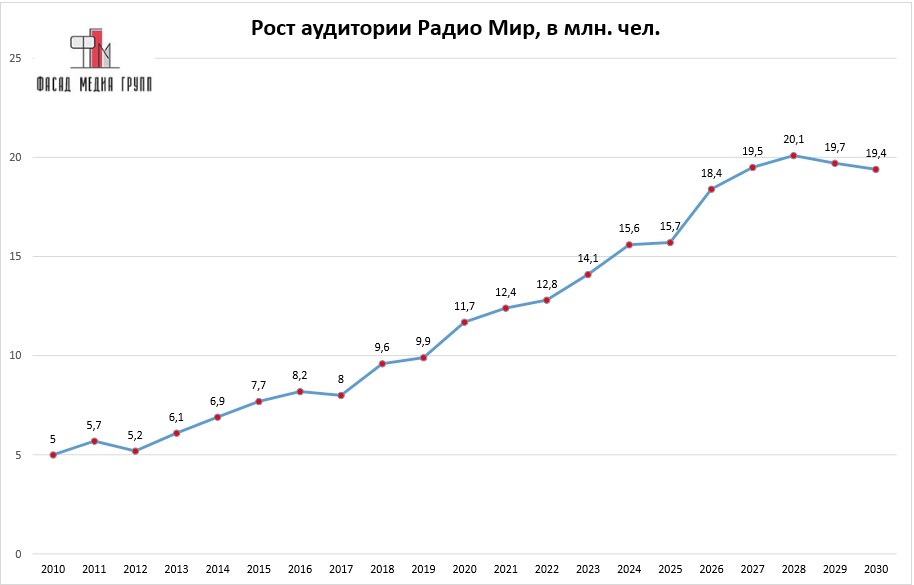 Показатели аудитории «Радио Мир» по России: