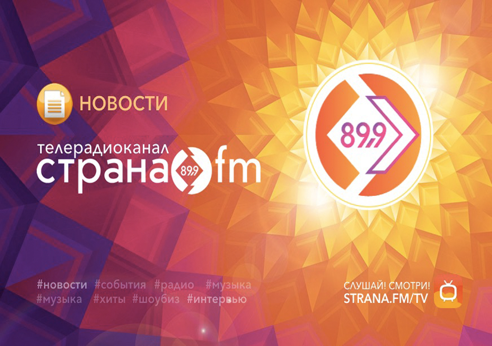Одна из ярких особенностей «Страна FM» — это мультиформат! В основе звучания русскоязычные хиты и совершенно новые качественные песни, понятные каждому человеку. Популярный рок и авторская песня, эстрада и поп музыка, новый мейнстрим, фолк, рэп, хиты интернета – все это в эфире телерадиоканала «Страна FM».