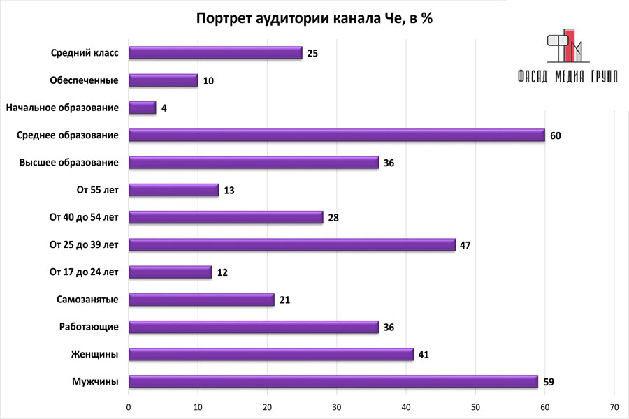 На вопрос: «Какова целевая аудитория телеканала «Че»? - можно указать следующее: