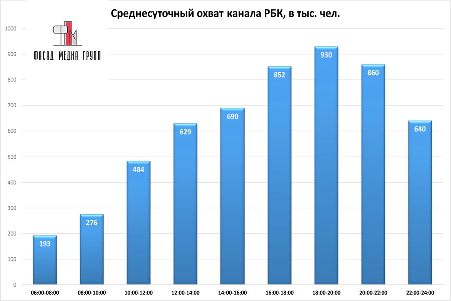 Популярность телеэфира на «РБК» приводит к ежегодному увеличению спроса на рекламное время. Для привлечения клиентов из разных регионов России, увеличения процента продаж, повышения имиджа компании и узнаваемости бренда – размещайте рекламу на «РБК». «РБК» – это проверенный и востребованный канал для размещения рекламы на старооскольском ТВ. Для размещения рекламы на телевидении обращайтесь в рекламное агентство «Фасад Медиа Групп». Будем рады сотрудничеству.