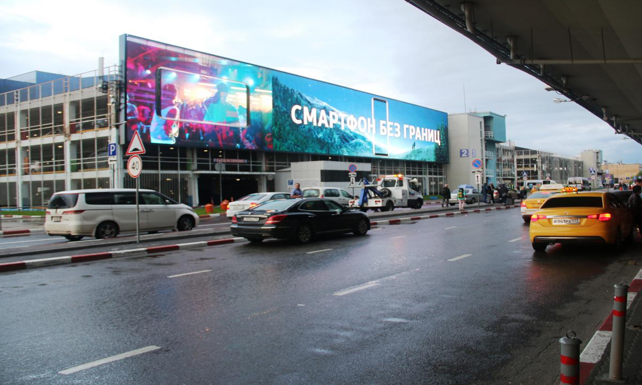 Пример рекламы на видеоэкране возле здания аэропорту: