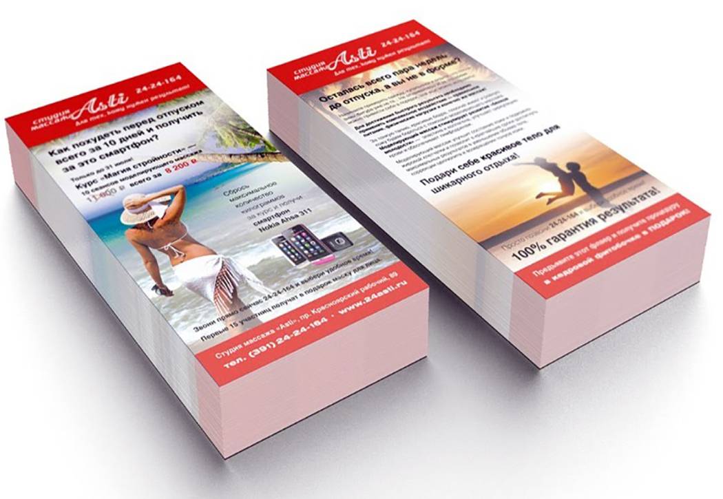 Необходимо отметить, что определенный тип бумаги используется для определенных целей. Тип бумаги подбирается в зависимости от того, какие цели вы планируете достичь в ходе проведения рекламной кампании. По вопросу подбора бумаги для печати рекламных материалов, просим обращаться к менеджерам нашего рекламного агентства. Будем рады помочь.