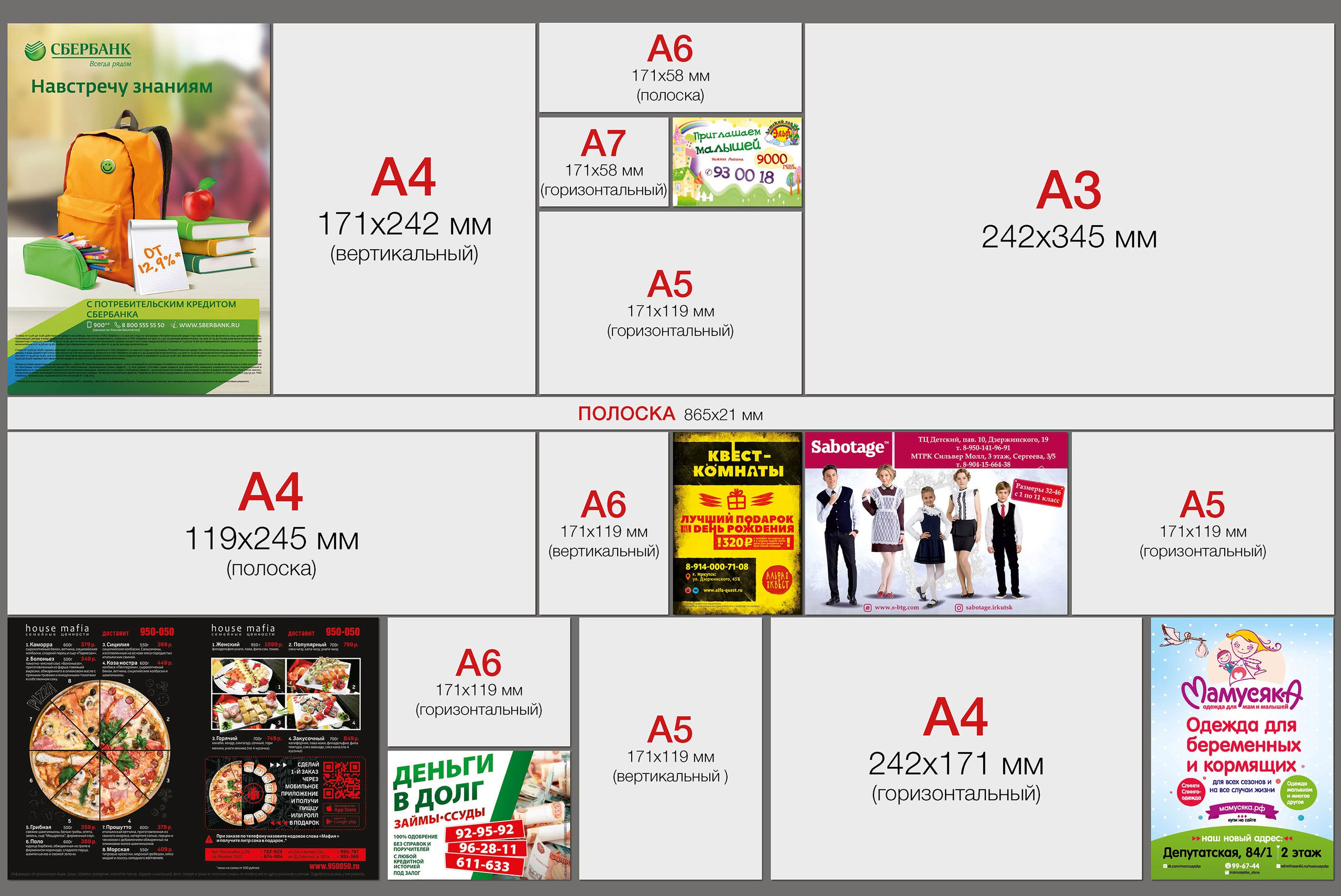 Приводим для примера различные форматы рекламных макетов: