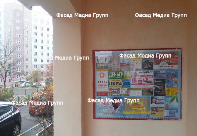 Уважаемые друзья! Для размещения рекламы в подъездах обращайтесь в рекламное агентство «Фасад Медиа Групп». Высокий уровень сервиса и низкие цены гарантируем. Мы все сделаем сами: дизайн и печать макета, монтаж и демонтаж. Отчёт предоставляем бесплатно и в 100% объеме.