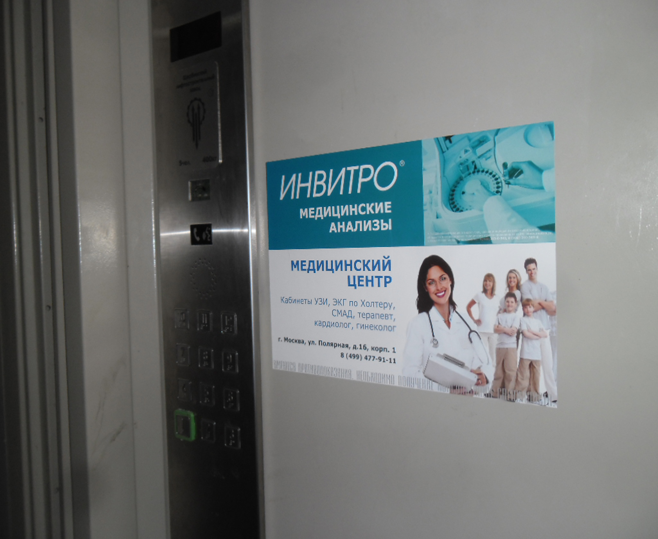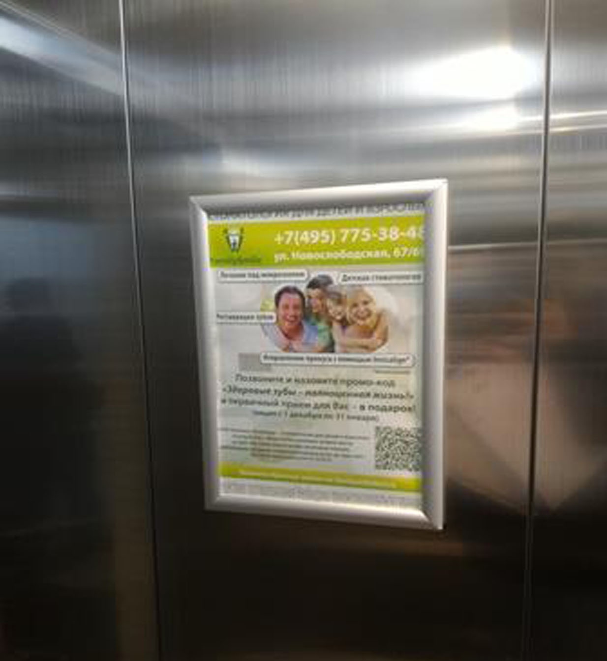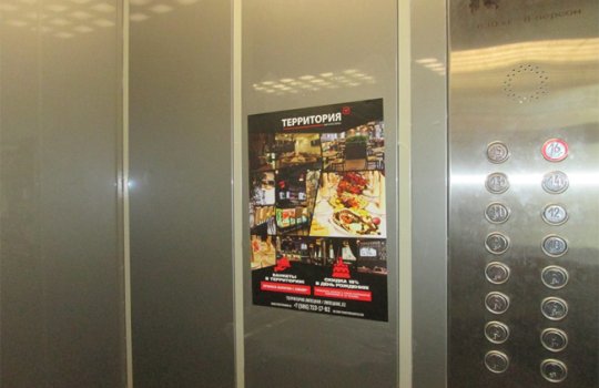 Пример рекламы в лифтах в поликлиниках: