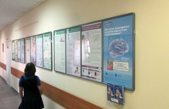 Реклама в поликлиниках отличается тем, что рекламные материалы располагаются на уровне глаз потенциального клиента или покупателя. Удачное расположение рекламы приводит к тому, что листовки, буклеты и другие форматы рекламы в поликлиниках хорошо видны и обеспечивают 100% читаемость со стороны посетителей.