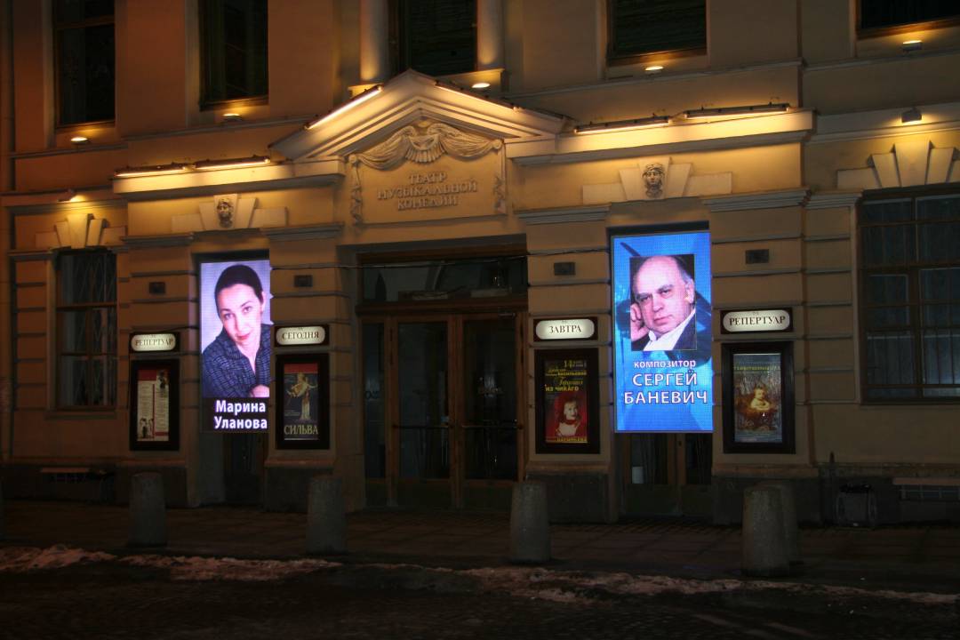Пример рекламного баннера на здании театра: