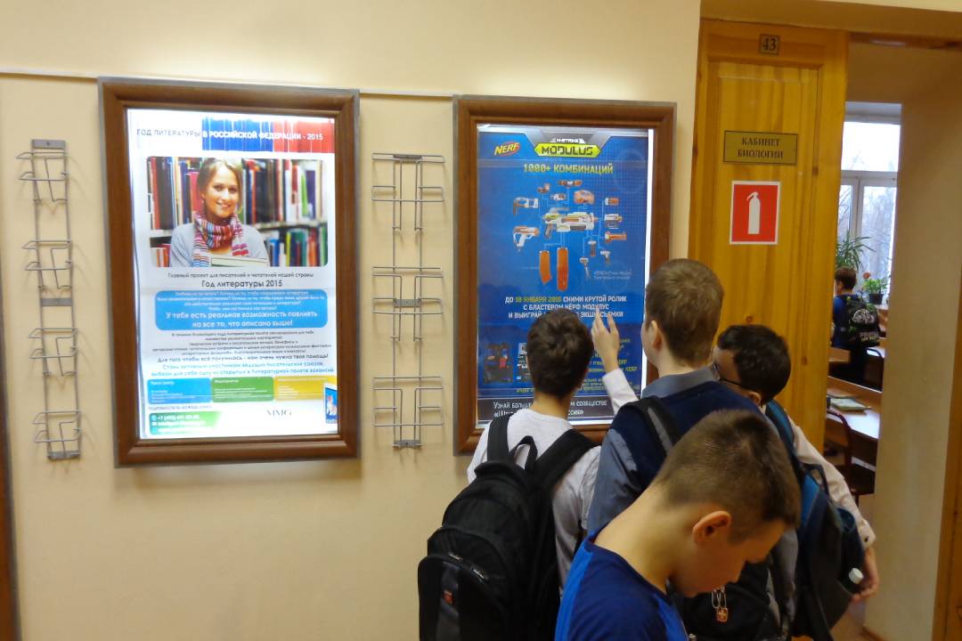 Реклама в ВУЗах отличается тем, что рекламные материалы располагаются на уровне глаз потенциального клиента или покупателя. Удачное расположение рекламы приводит к тому, что листовки, буклеты и другие форматы рекламы в ВУЗах (институтах, университетах, академиях и т.д.) хорошо видны и обеспечивают 100% читаемость со стороны посетителей.